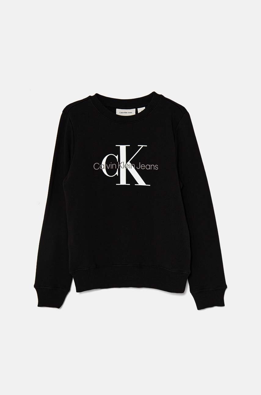 Calvin Klein Jeans bluza bawełniana dziecięca kolor czarny z nadrukiem IU0IU00675