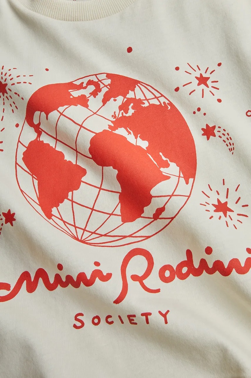 Mini Rodini t-shirt bawełniany dziecięcy Mini Rodini society kolor beżowy z nadrukiem 2562011811