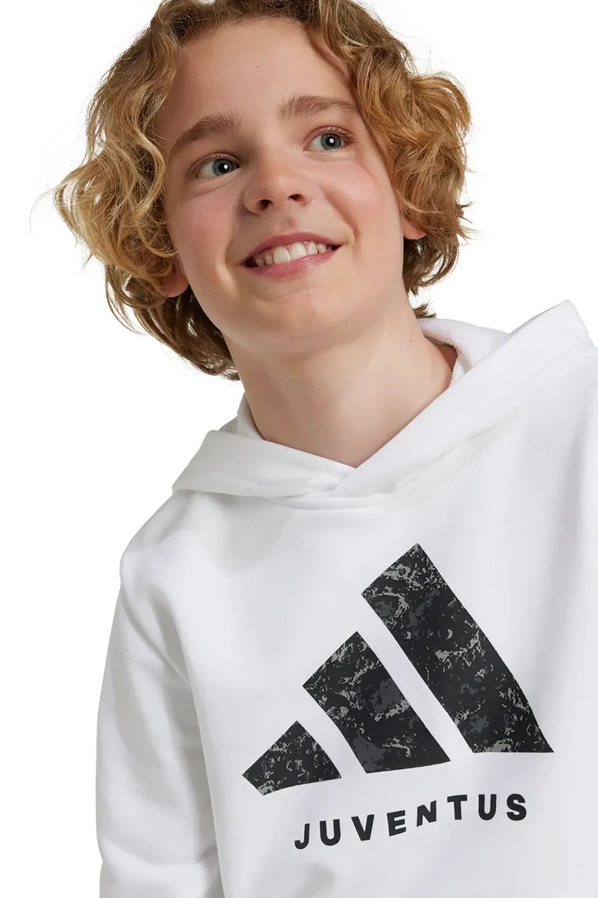 adidas Performance bluza dziecięca JUVENTUS kolor biały z kapturem z nadrukiem IT3846