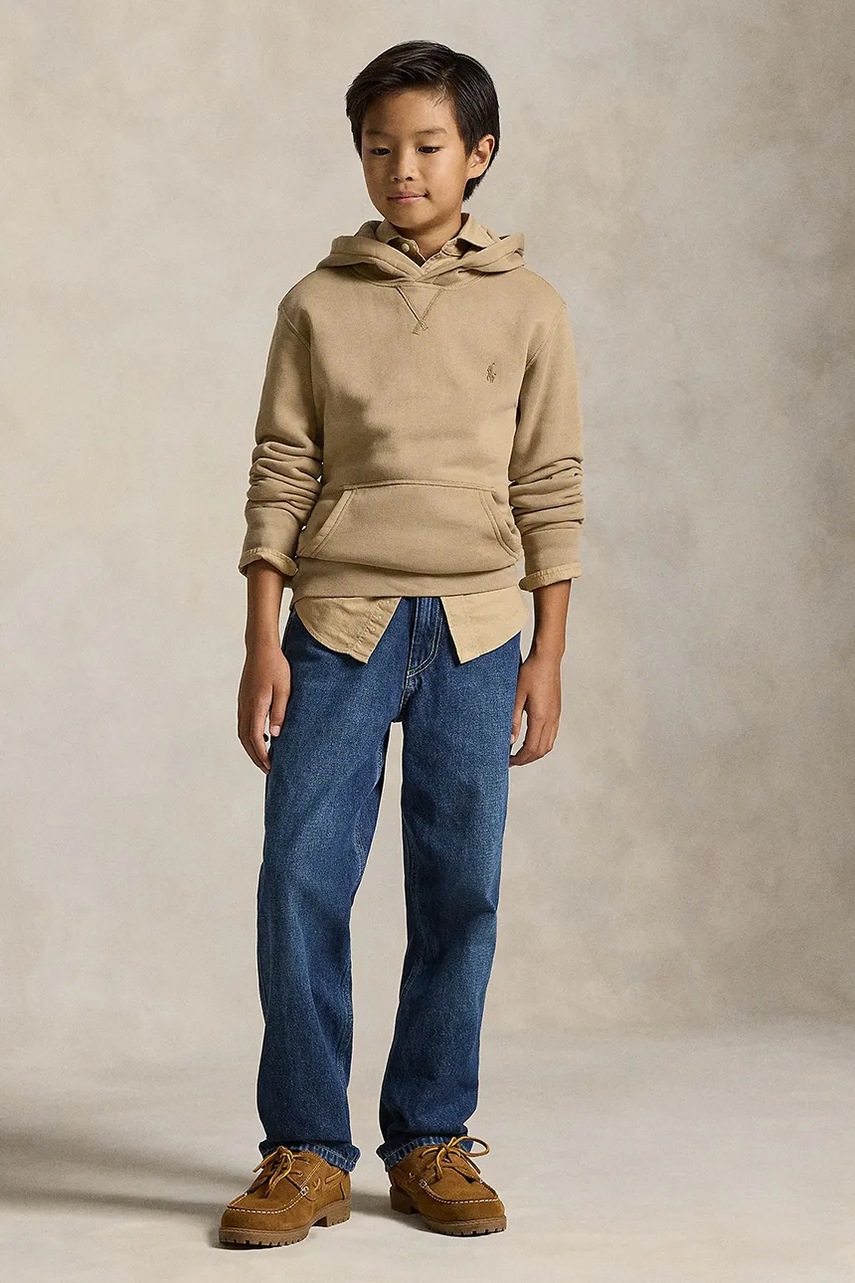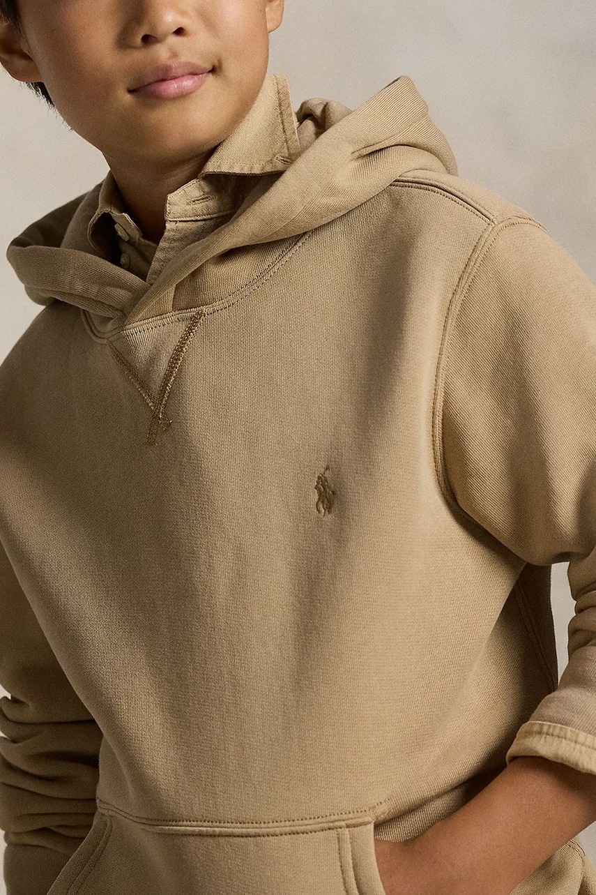 Polo Ralph Lauren bluza bawełniana dziecięca kolor beżowy z kapturem gładka 323749954062