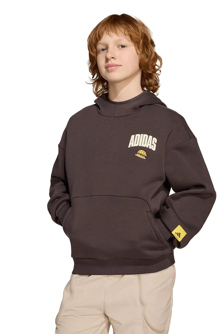 adidas bluza dziecięca kolor brązowy z kapturem z nadrukiem JL9181