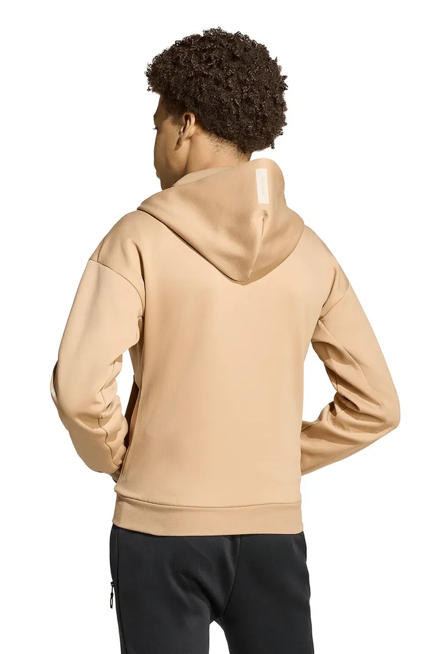 adidas bluza dziecięca kolor brązowy z kapturem z nadrukiem JW4004