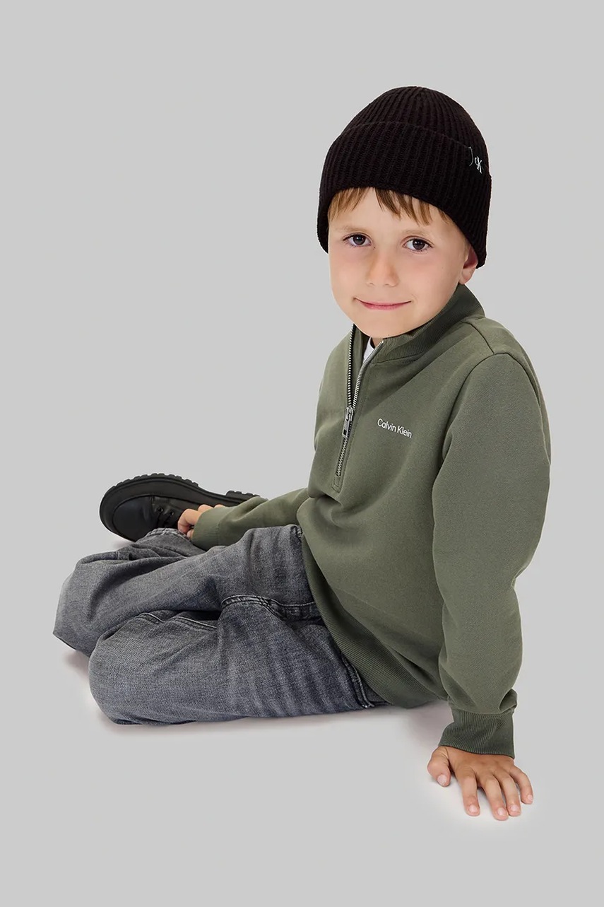 Calvin Klein Jeans bluza bawełniana dziecięca kolor zielony gładka IU0IU00721