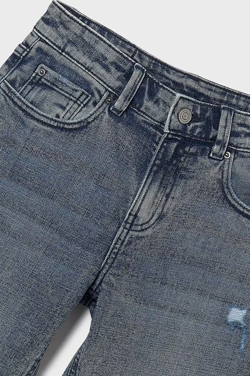 - Model z regularną talią i zapięciem na guzik i suwak.