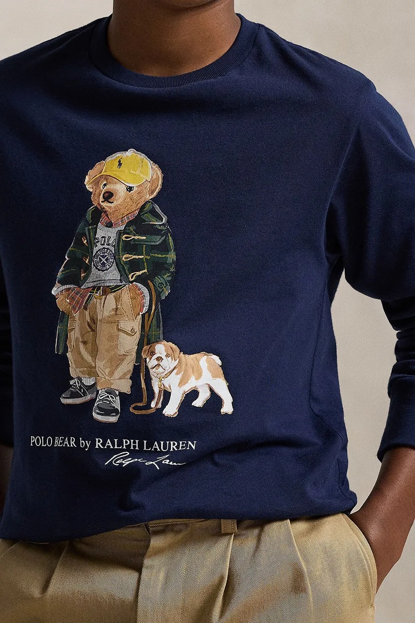 Polo Ralph Lauren longsleeve bawełniany dziecięcy kolor granatowy z nadrukiem 323981177001