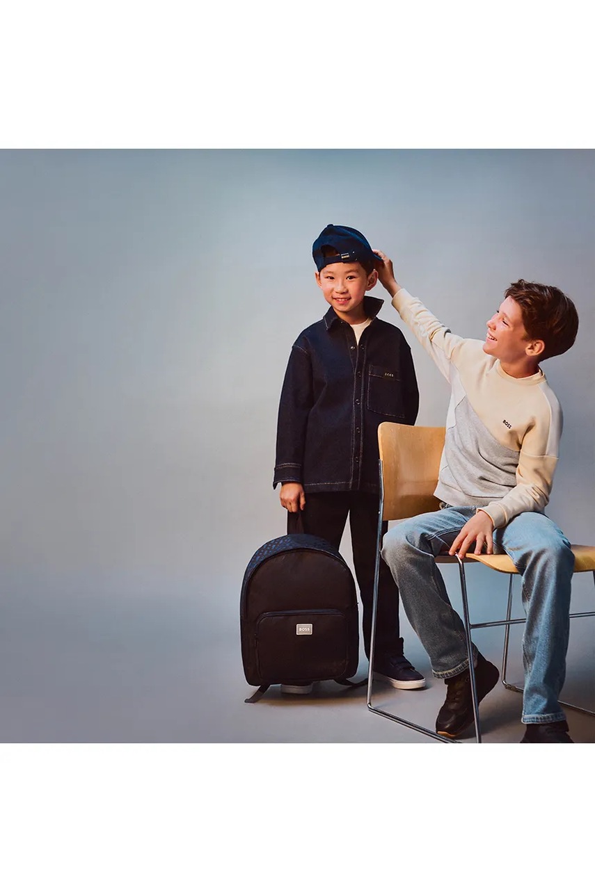 BOSS bluza z bawełną dziecięca kolor beżowy wzorzysta J52352