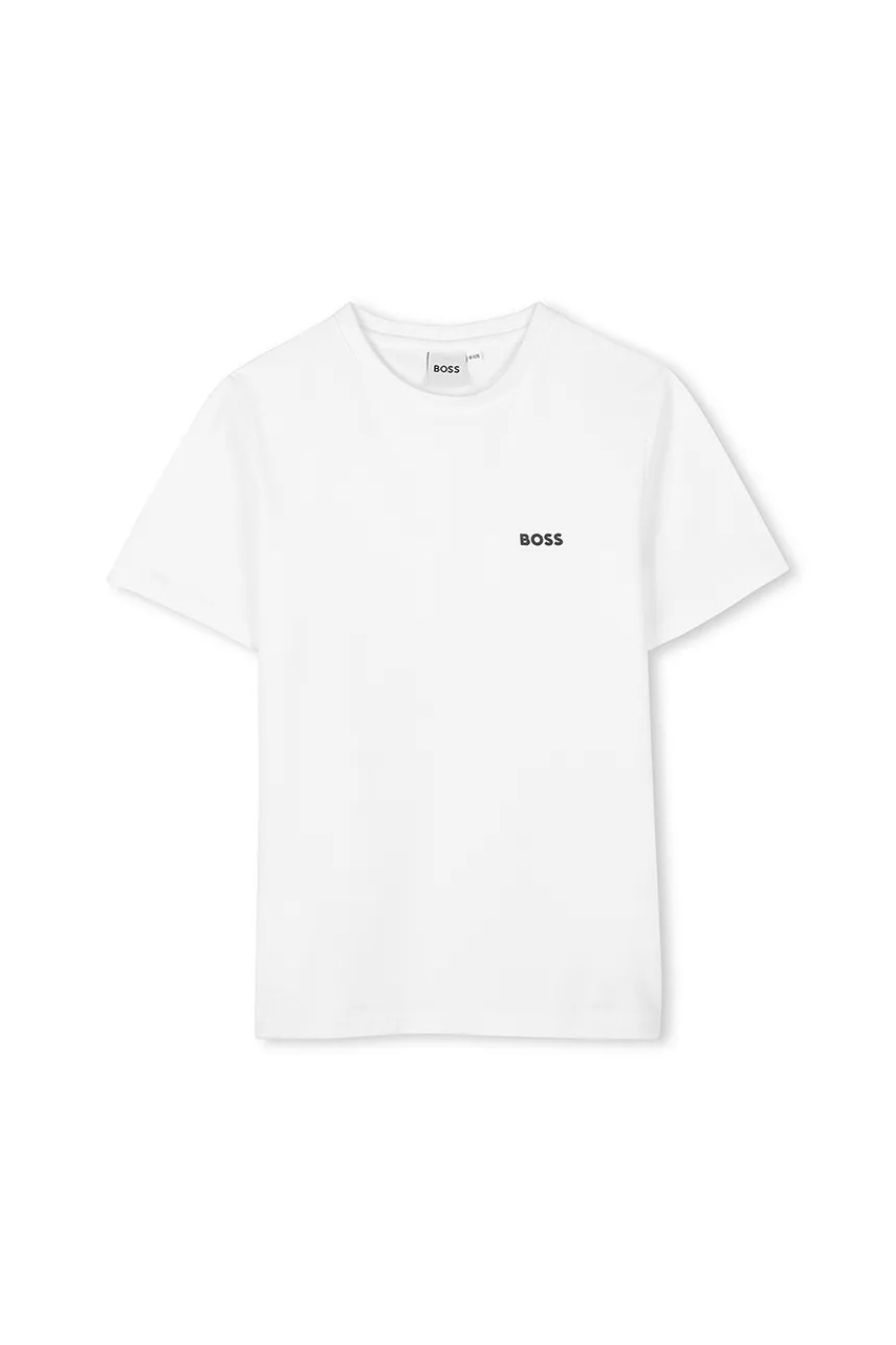 BOSS t-shirt bawełniany dziecięcy kolor granatowy z nadrukiem J52680