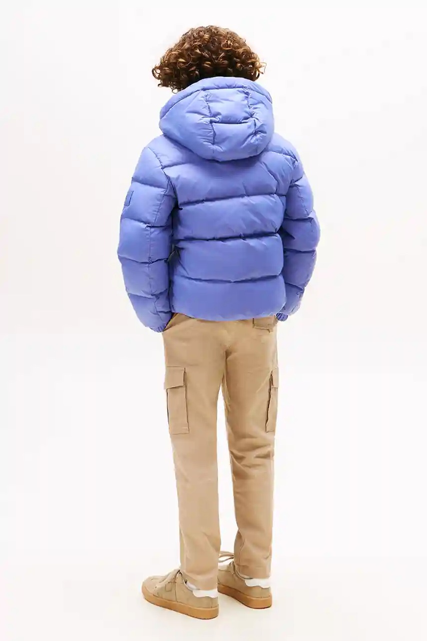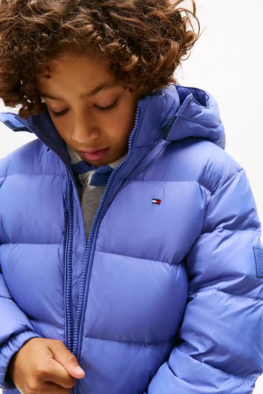 Tommy Hilfiger kurtka puchowa dziecięca kolor niebieski KB0KB10091