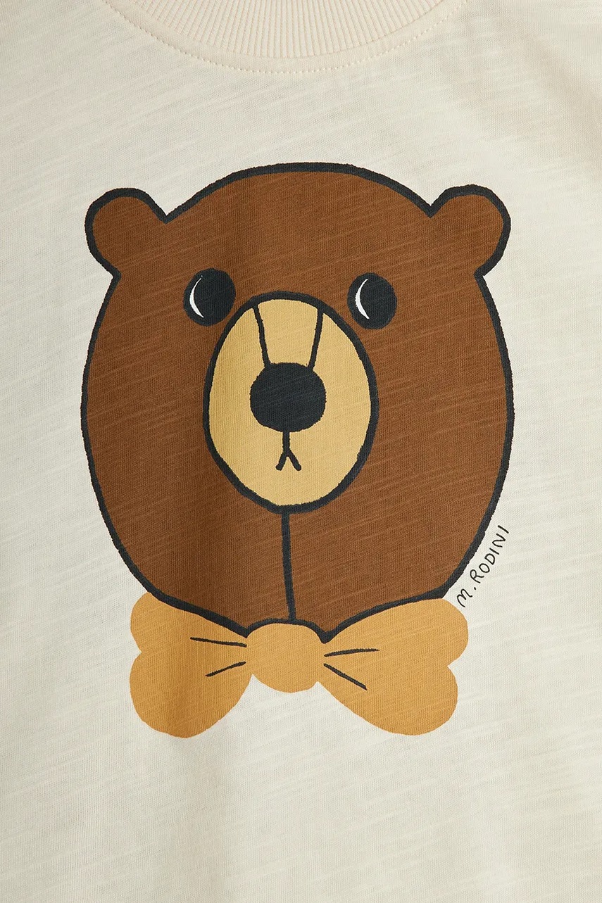 Mini Rodini t-shirt bawełniany dziecięcy Bear kolor beżowy z nadrukiem 25720107