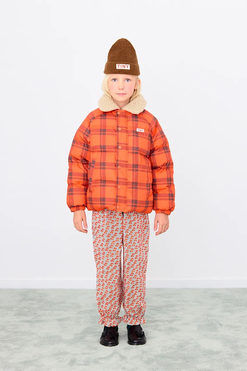 Tinycottons kurtka dziecięca CHECK PADDED JACKET kolor pomarańczowy AW25-145