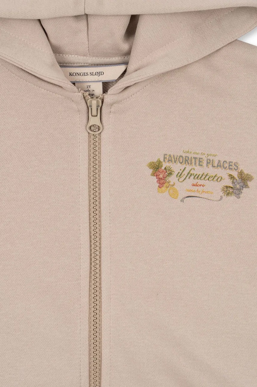 Konges Slojd bluza dziecięca z bawełną LOU SWEAT ZIP HOOD OCS kolor beżowy z kapturem melanżowa KS103865