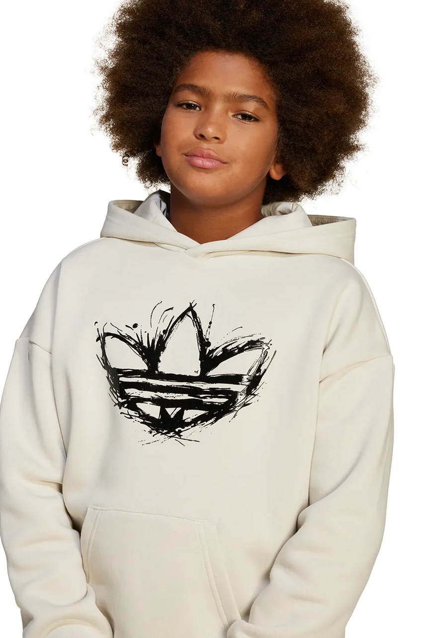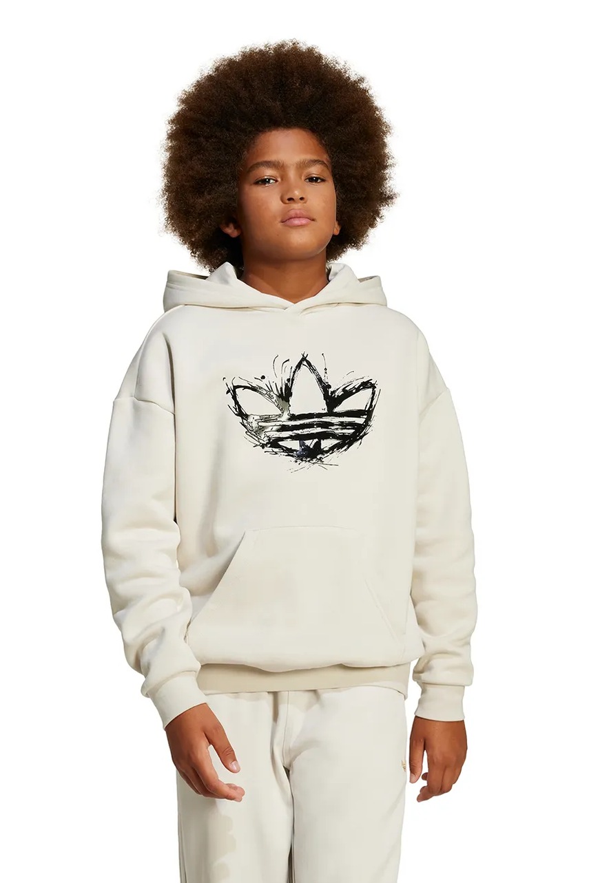 adidas Originals bluza dziecięca kolor beżowy z kapturem z aplikacją JD0366