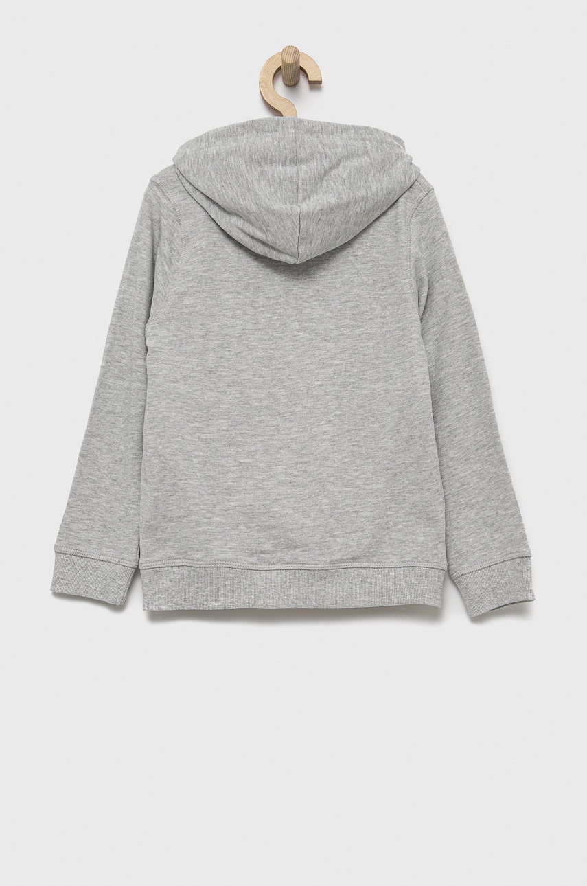 Guess Bluza bawełniana dziecięca kolor szary z kapturem z nadrukiem