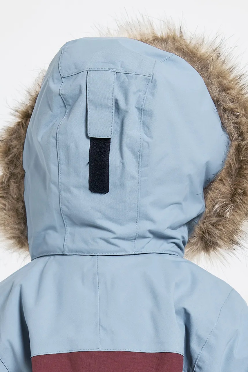 - Elastyczny ściągacz z zapięciem na rzep, pozwala na idealne dopasowanie i zapobiega przedostaniu się do wnętrza zimnego powietrza i śniegu.