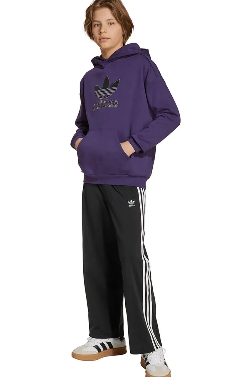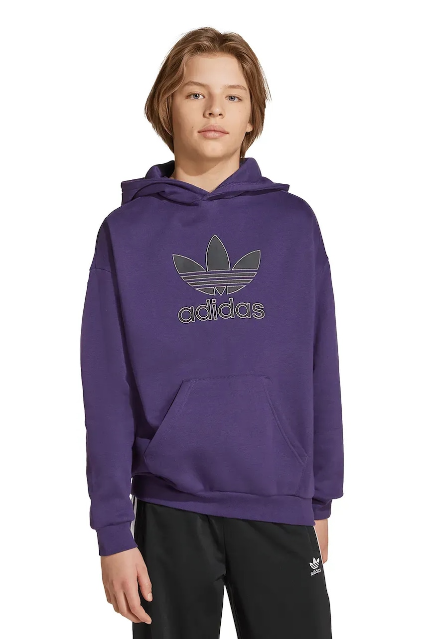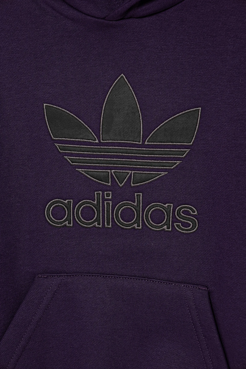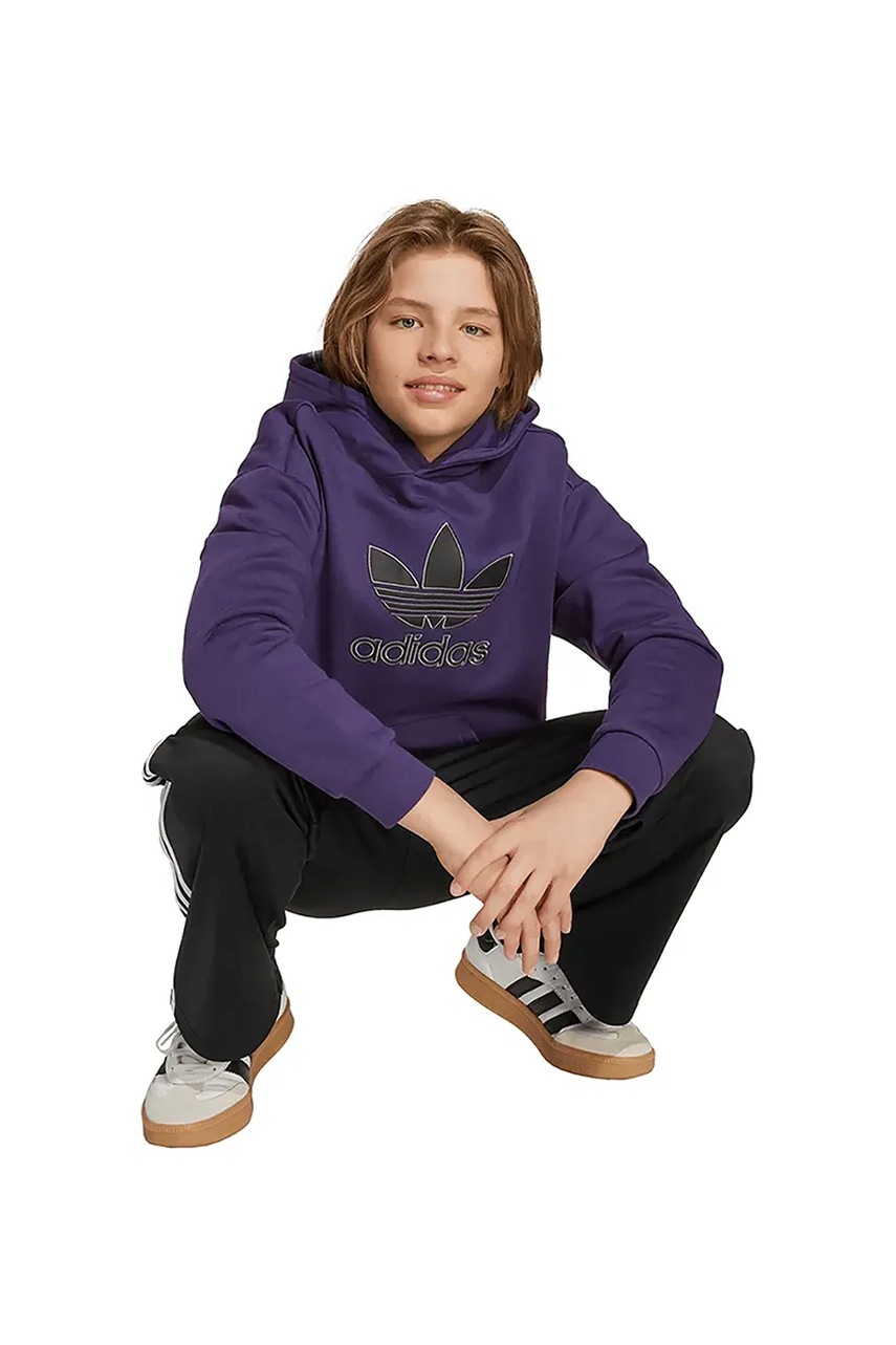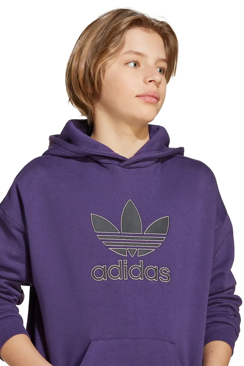 adidas Originals bluza dziecięca kolor fioletowy z kapturem z aplikacją JV8653