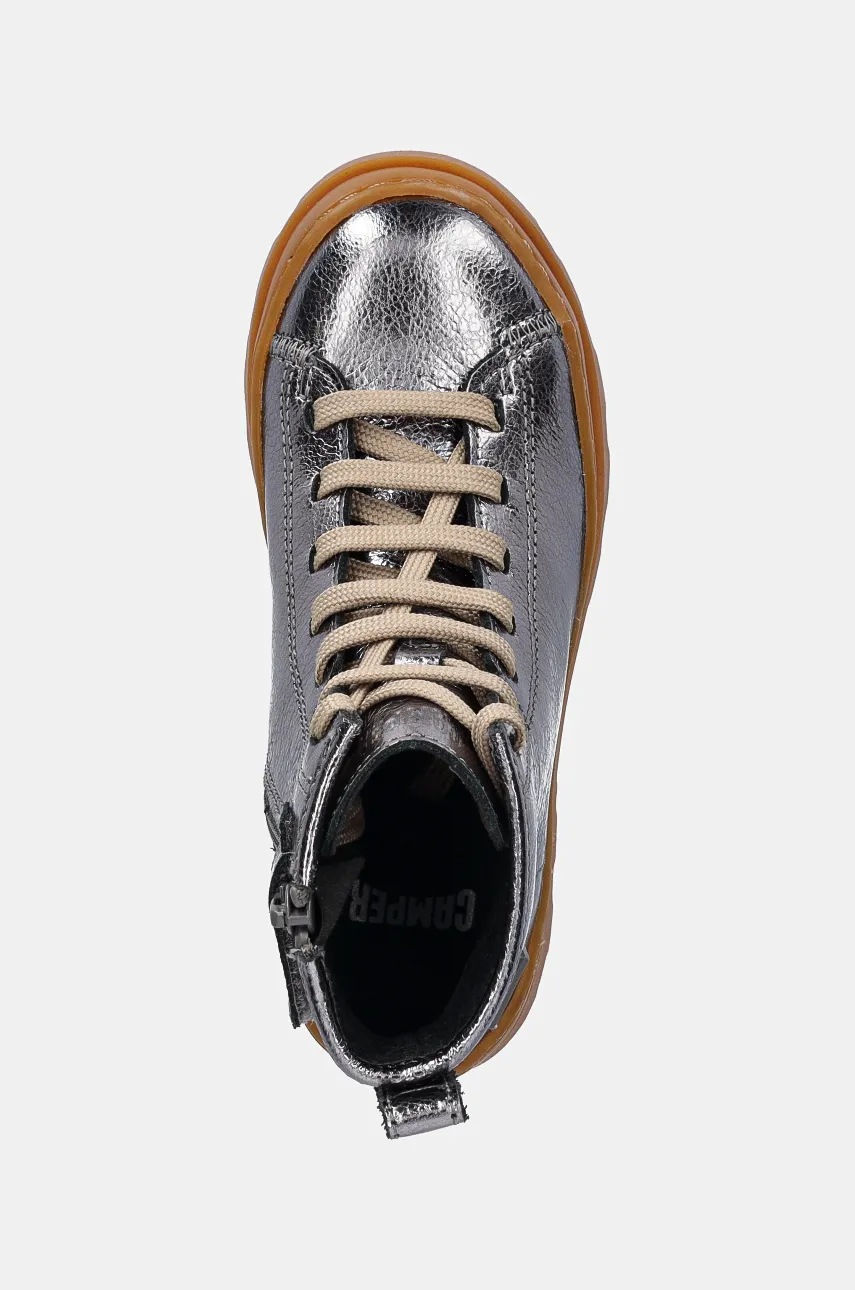 Camper buty zimowe skórzane dziecięce Brutus kolor srebrny K900179