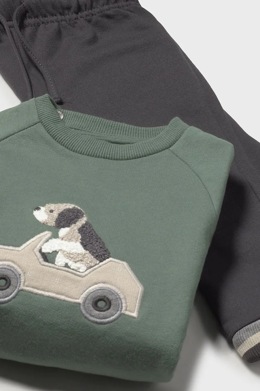 - Komplet zawiera bluzę i dwie pary spodni.