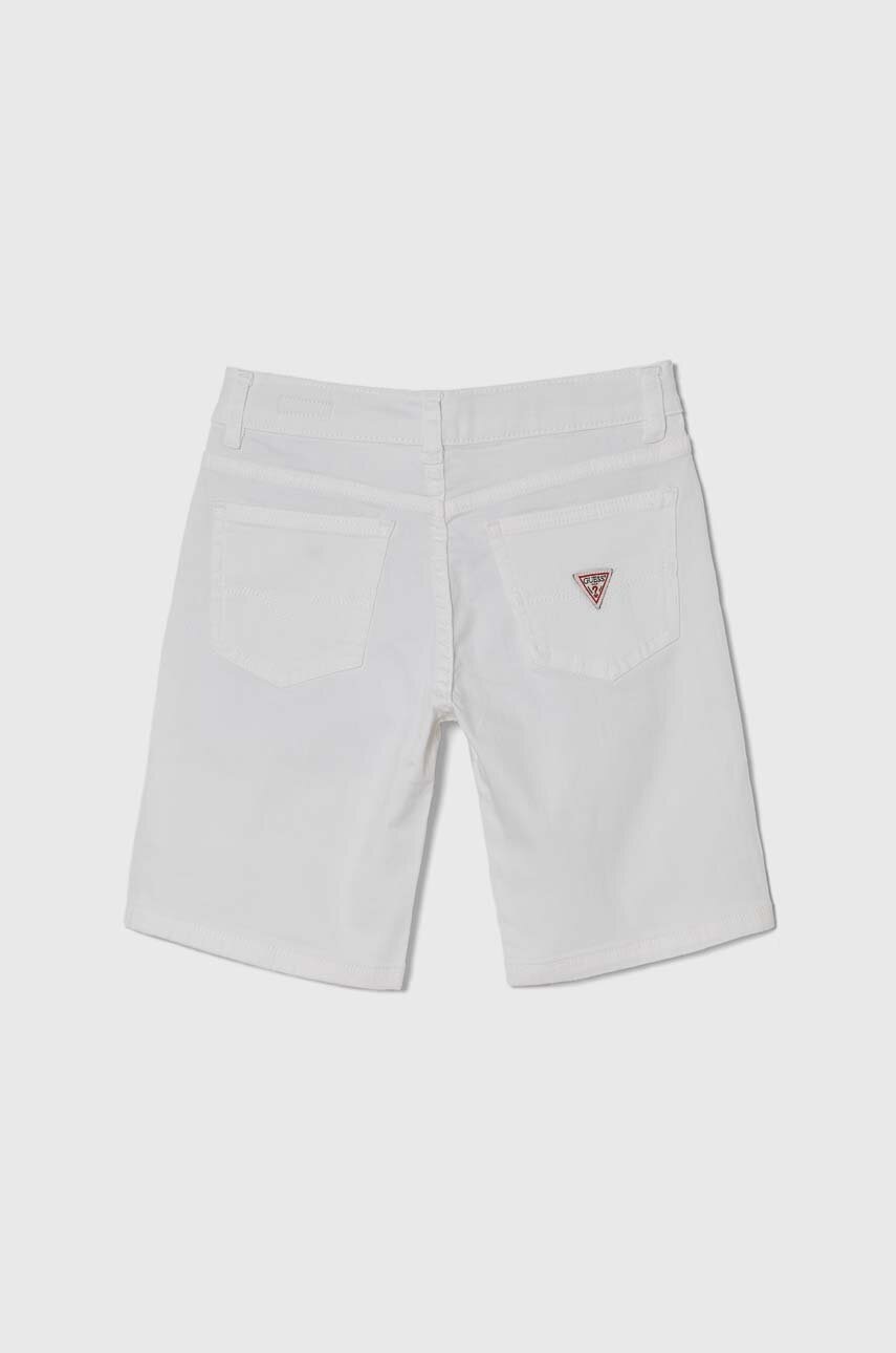 Guess szorty jeansowe dziecięce kolor biały regulowana talia