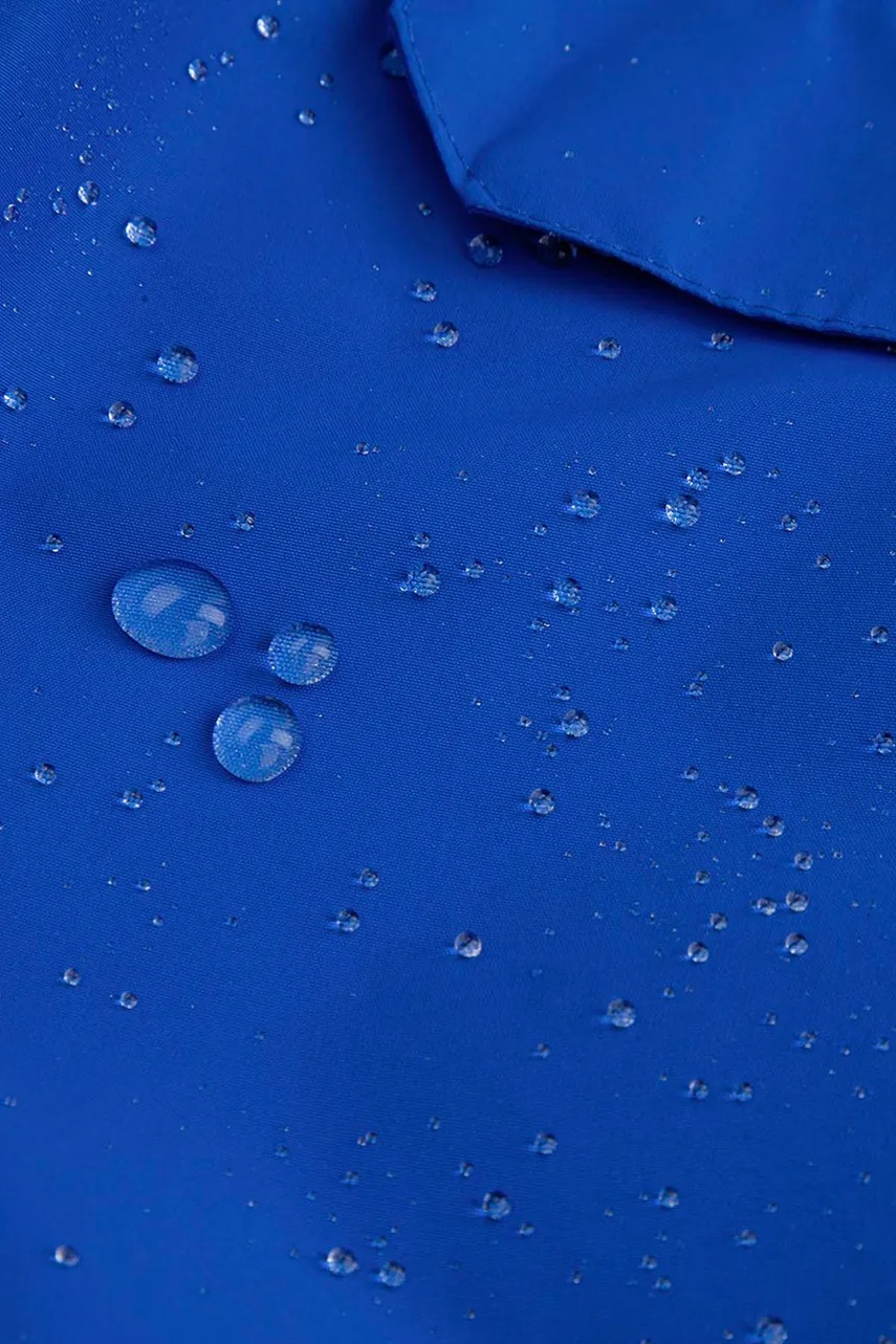 - Hydrofobowe wykończenie materiału zapewnia wodoodporność. Dzięki zastosowaniu tej metody woda skrapla się na powierzchni materiału i spływa po nim, nie wchłaniając się do wewnątrz.