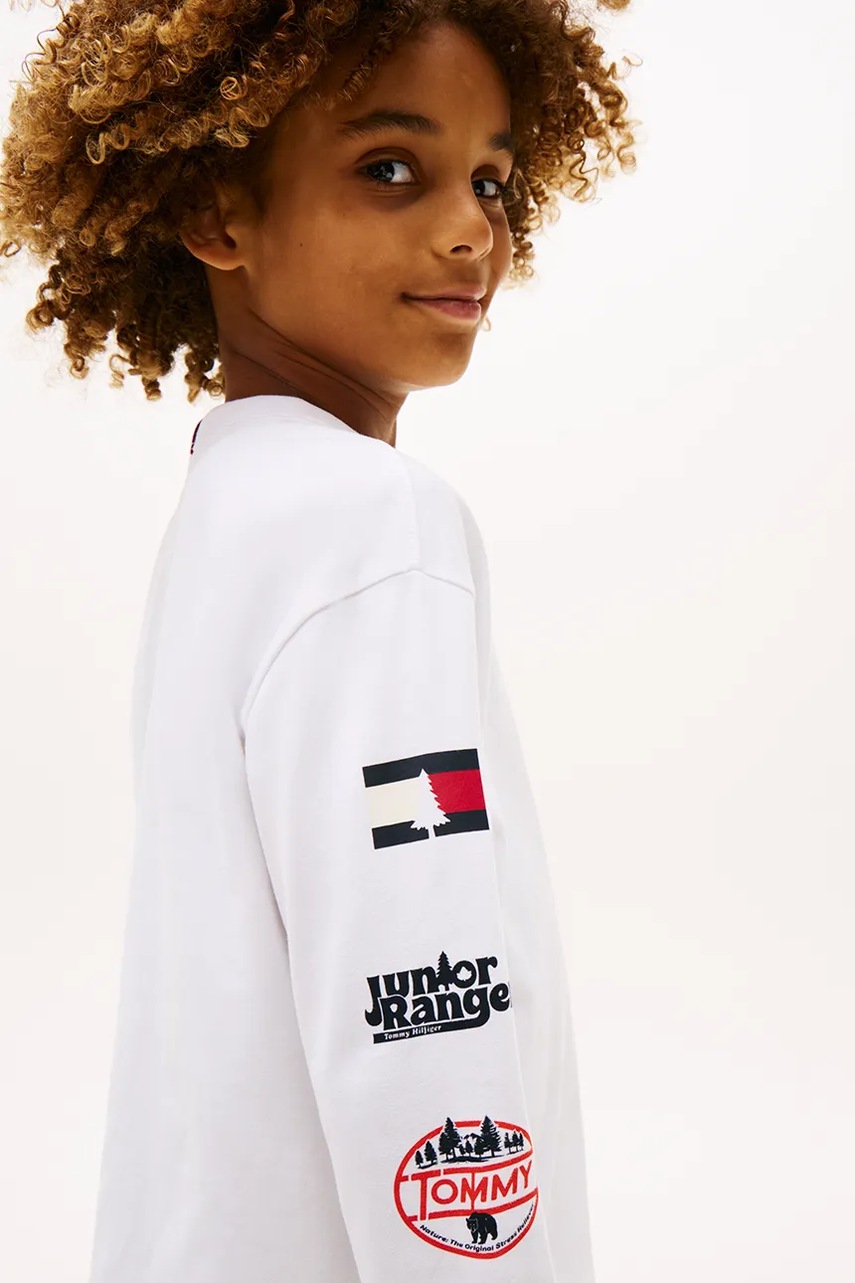 Tommy Hilfiger longsleeve dziecięcy kolor biały z nadrukiem KB0KB09935