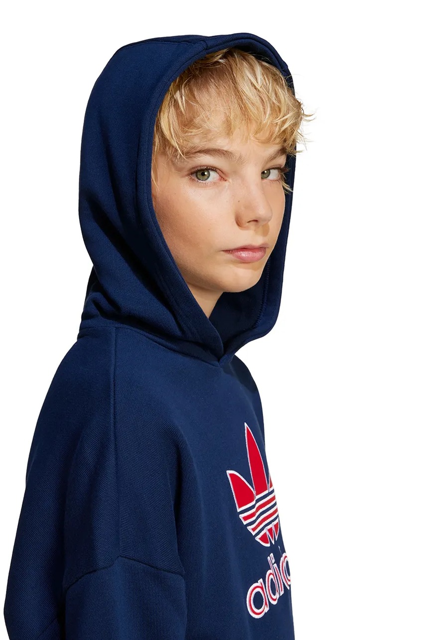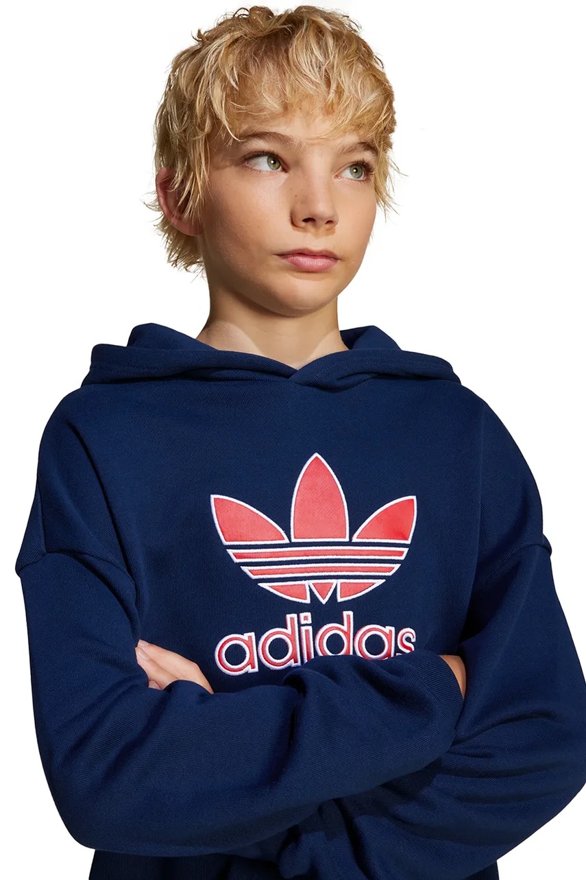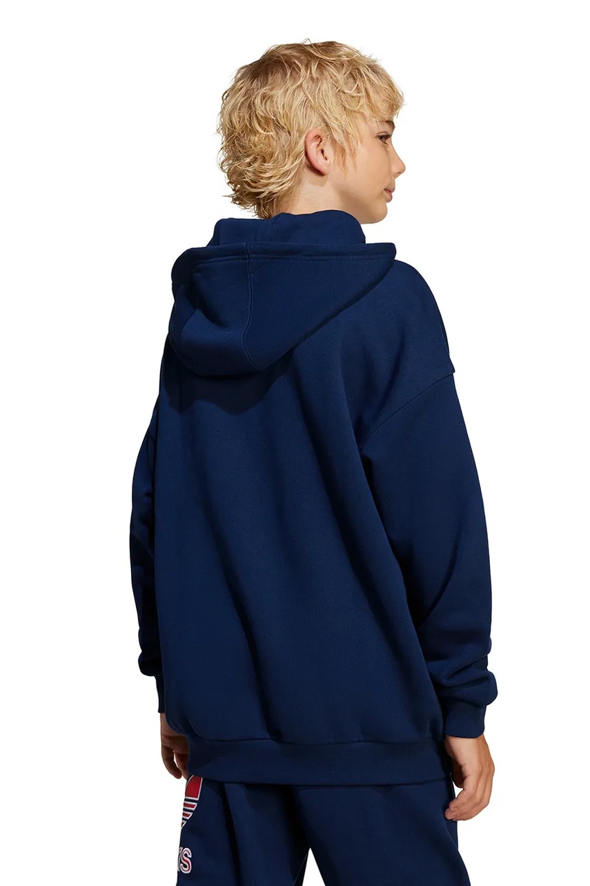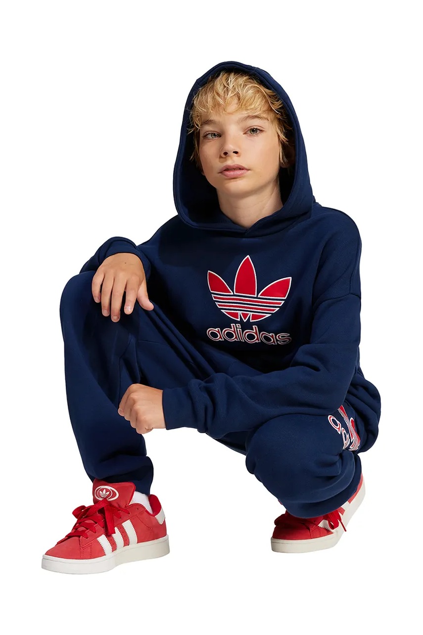 adidas Originals bluza bawełniana dziecięca kolor granatowy z kapturem z nadrukiem JC9128