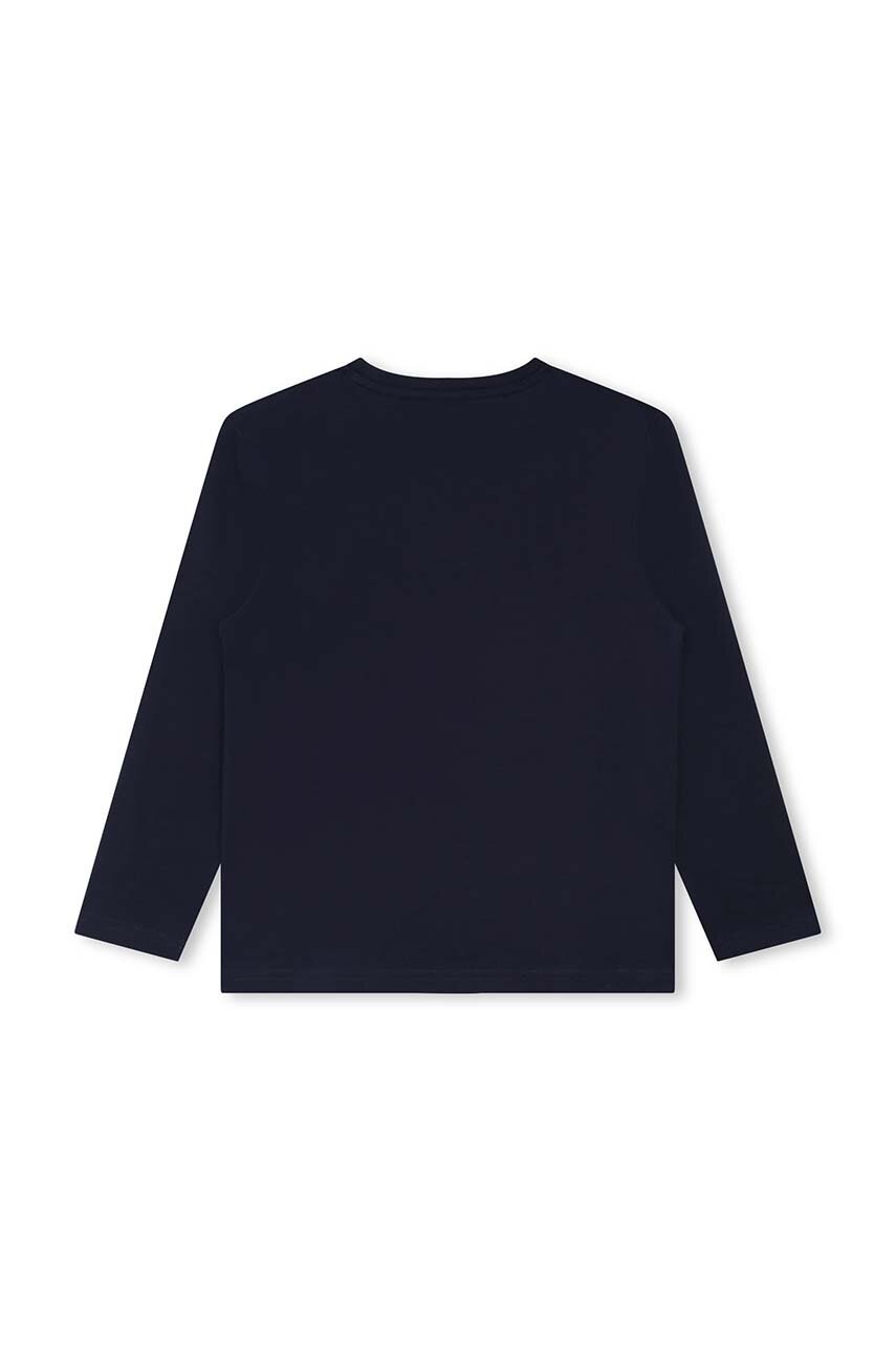 BOSS longsleeve bawełniany dziecięcy kolor granatowy z nadrukiem