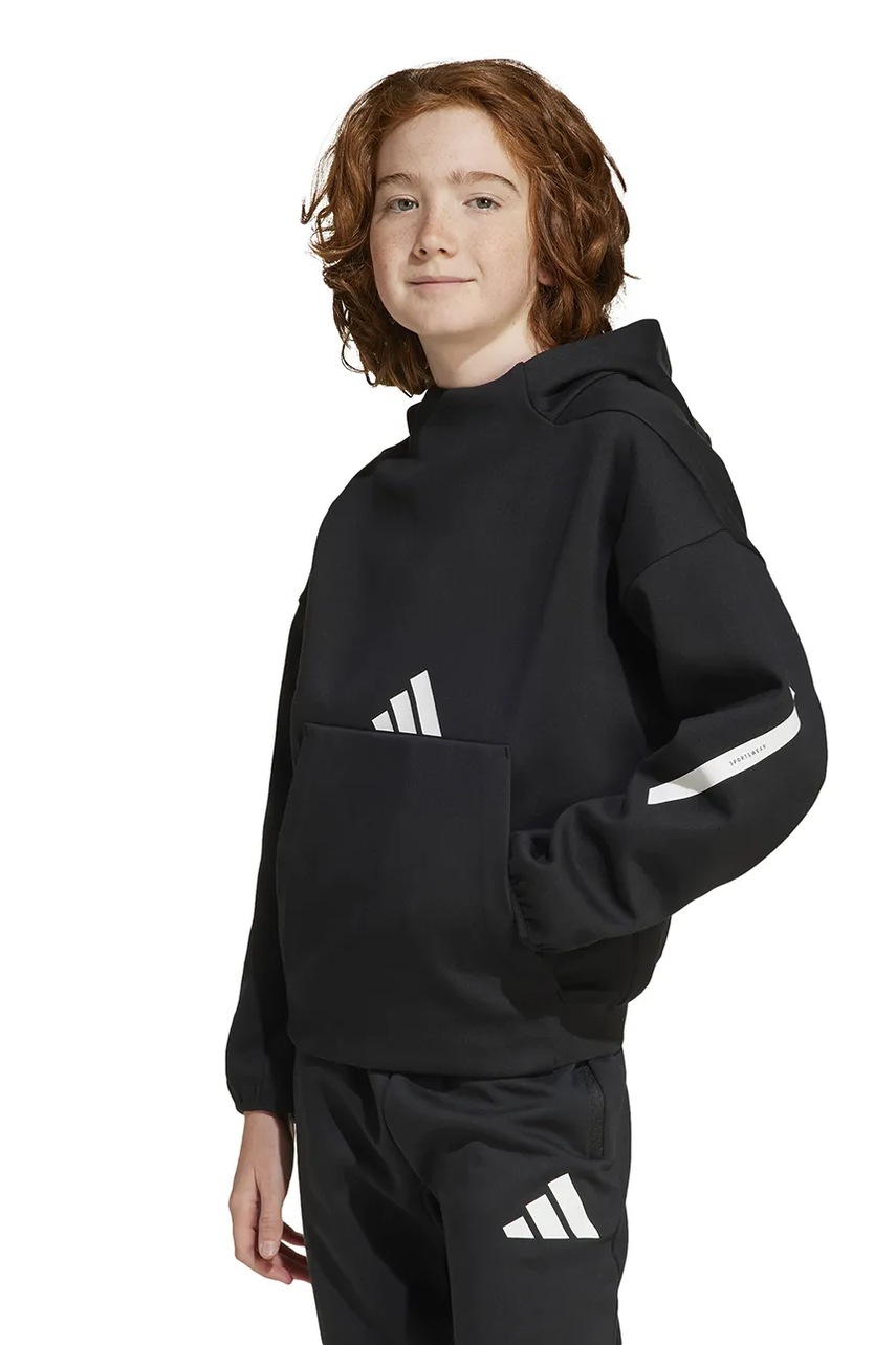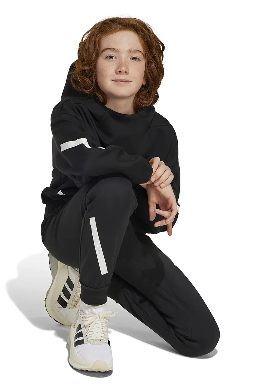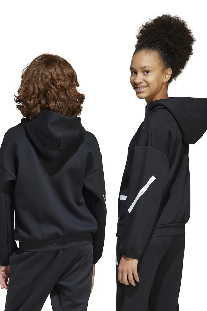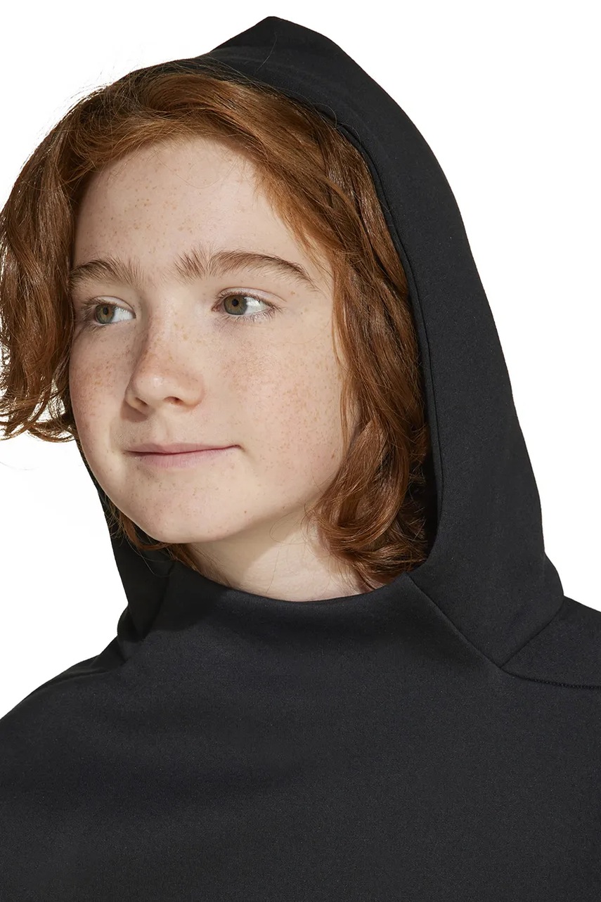adidas bluza dziecięca kolor czarny z kapturem z nadrukiem IS6916