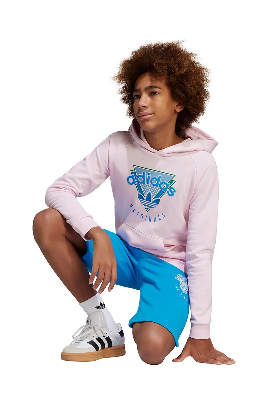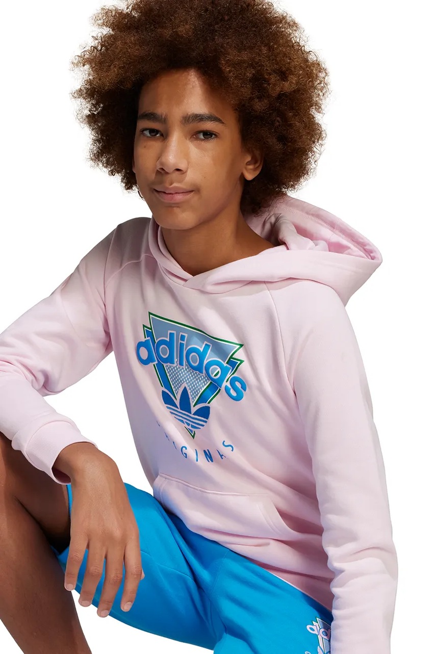 adidas Originals bluza dziecięca kolor różowy z kapturem z aplikacją JC5864