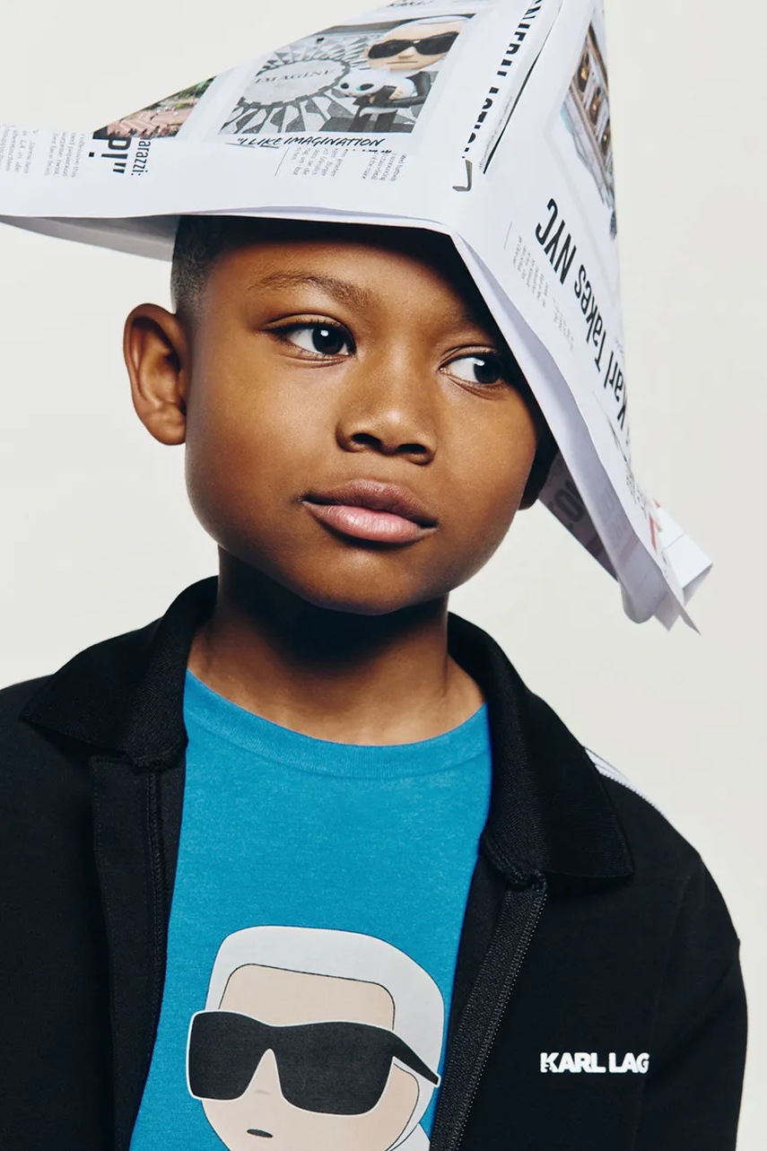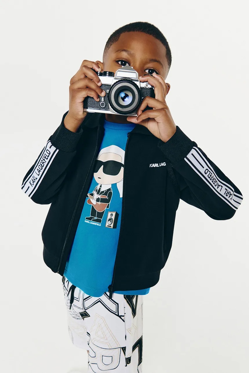 Karl Lagerfeld t-shirt bawełniany dziecięcy kolor niebieski z nadrukiem Z30438