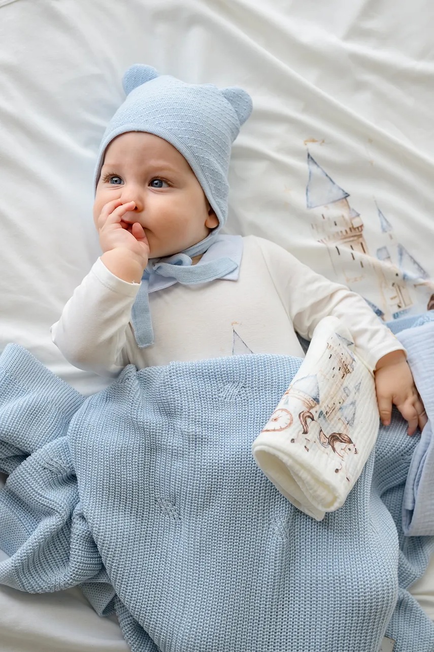 - W zestawie: 2 pieluszki, zawieszka do smoczka i przytulanka.