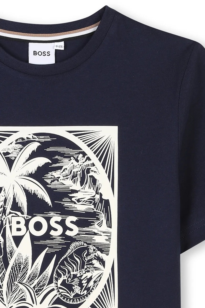 BOSS t-shirt bawełniany dziecięcy kolor granatowy z nadrukiem J52050