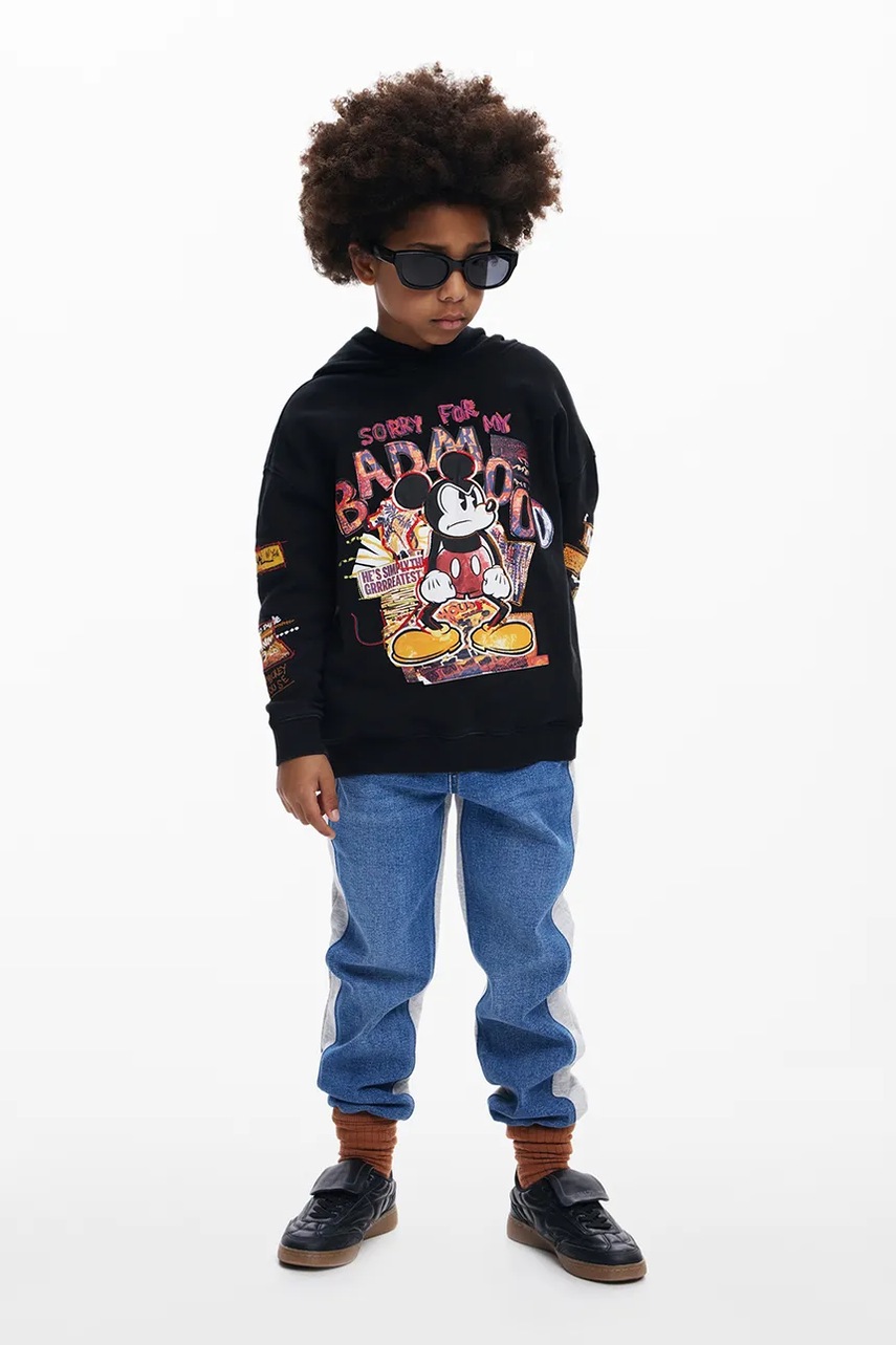 Desigual bluza bawełniana dziecięca kolor czarny z kapturem z nadrukiem 25SBSK08
