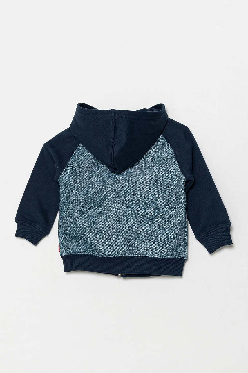 Levi's bluza niemowlęca TROMPE LOEIL DENIM HOODIE kolor granatowy z kapturem wzorzysta 6EM394