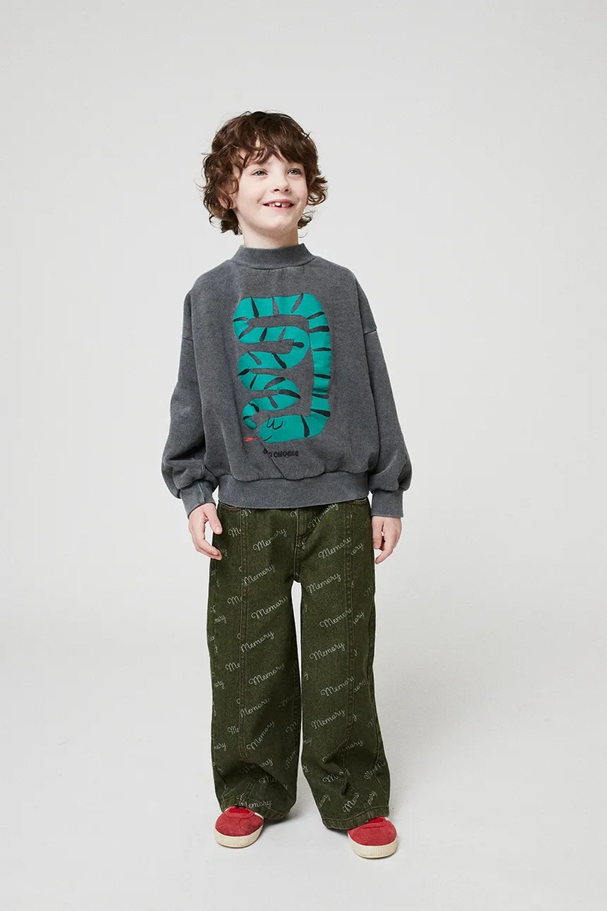 Bobo Choses bluza bawełniana dziecięca Snake kolor szary z nadrukiem 225BC006