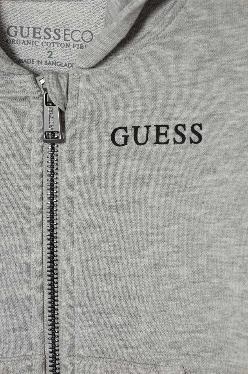 Guess bluza bawełniana dziecięca kolor szary z kapturem gładka