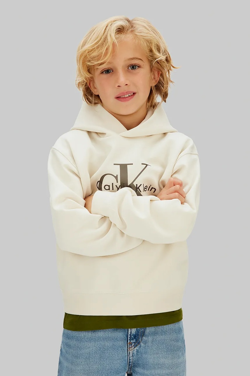 Calvin Klein Jeans bluza dziecięca kolor beżowy z kapturem z nadrukiem IB0IB02615