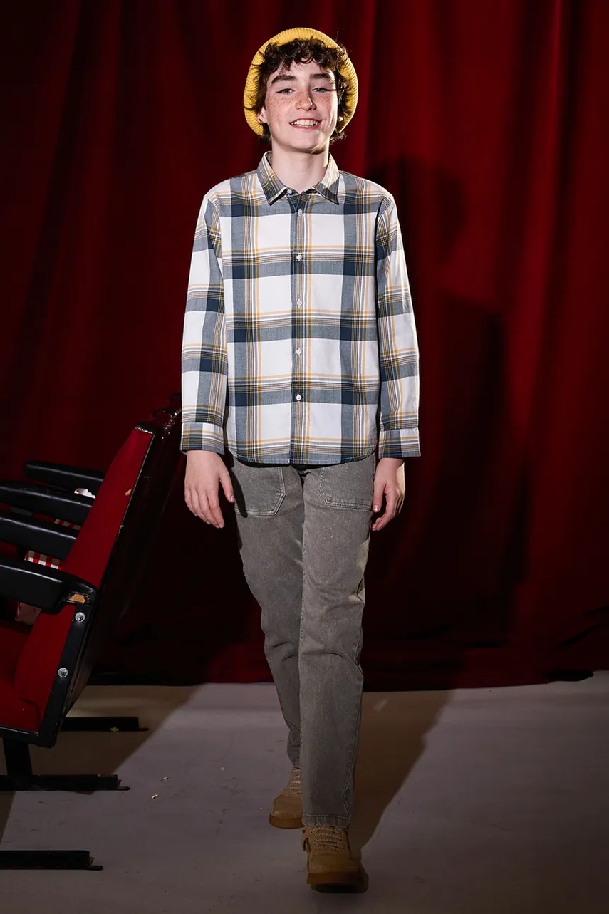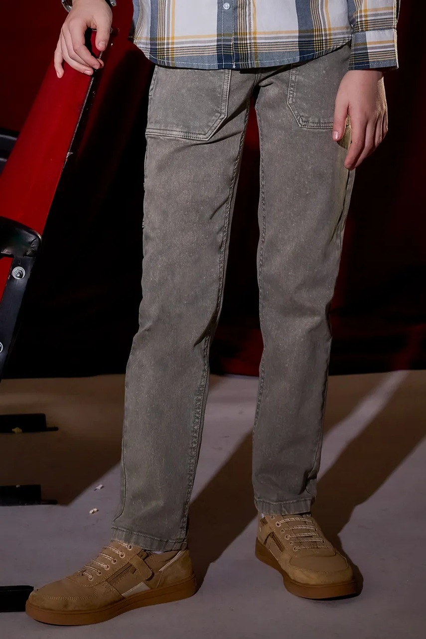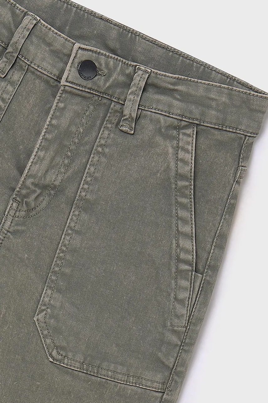 - Model z regularną talią i zapięciem na guzik i suwak.