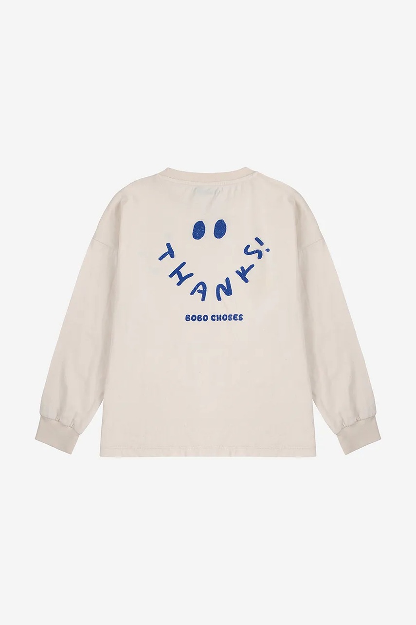 Bobo Choses longsleeve bawełniany dziecięcy Thanks kolor beżowy z nadrukiem 225FC001