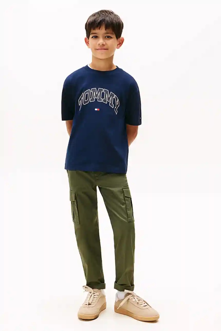 Tommy Hilfiger t-shirt bawełniany dziecięcy kolor granatowy z nadrukiem KB0KB09939