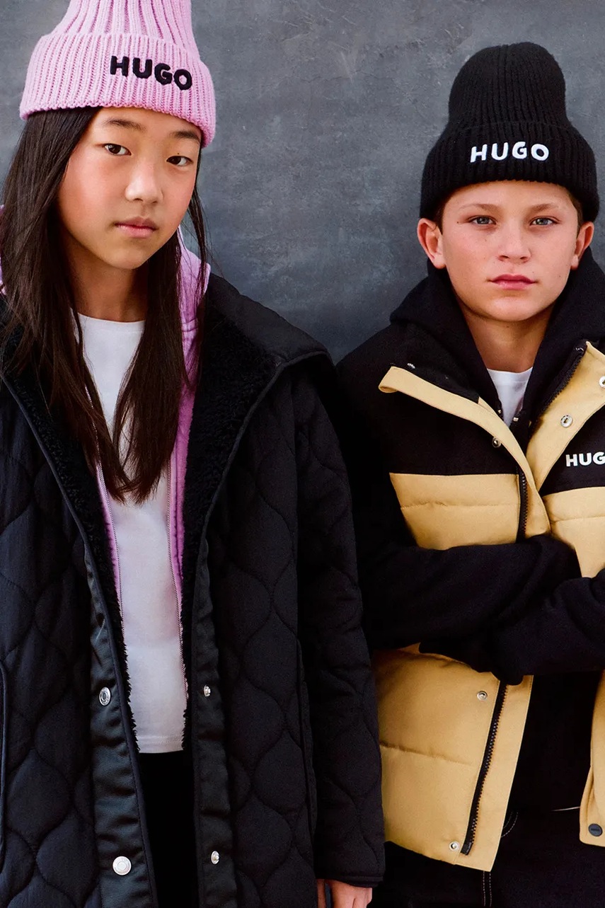 HUGO bezrękawnik puchowy dziecięcy kolor beżowy G00482