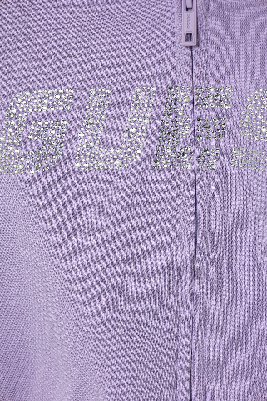 Guess bluza bawełniana dziecięca kolor fioletowy z kapturem z aplikacją J5GQ07 KCRP0
