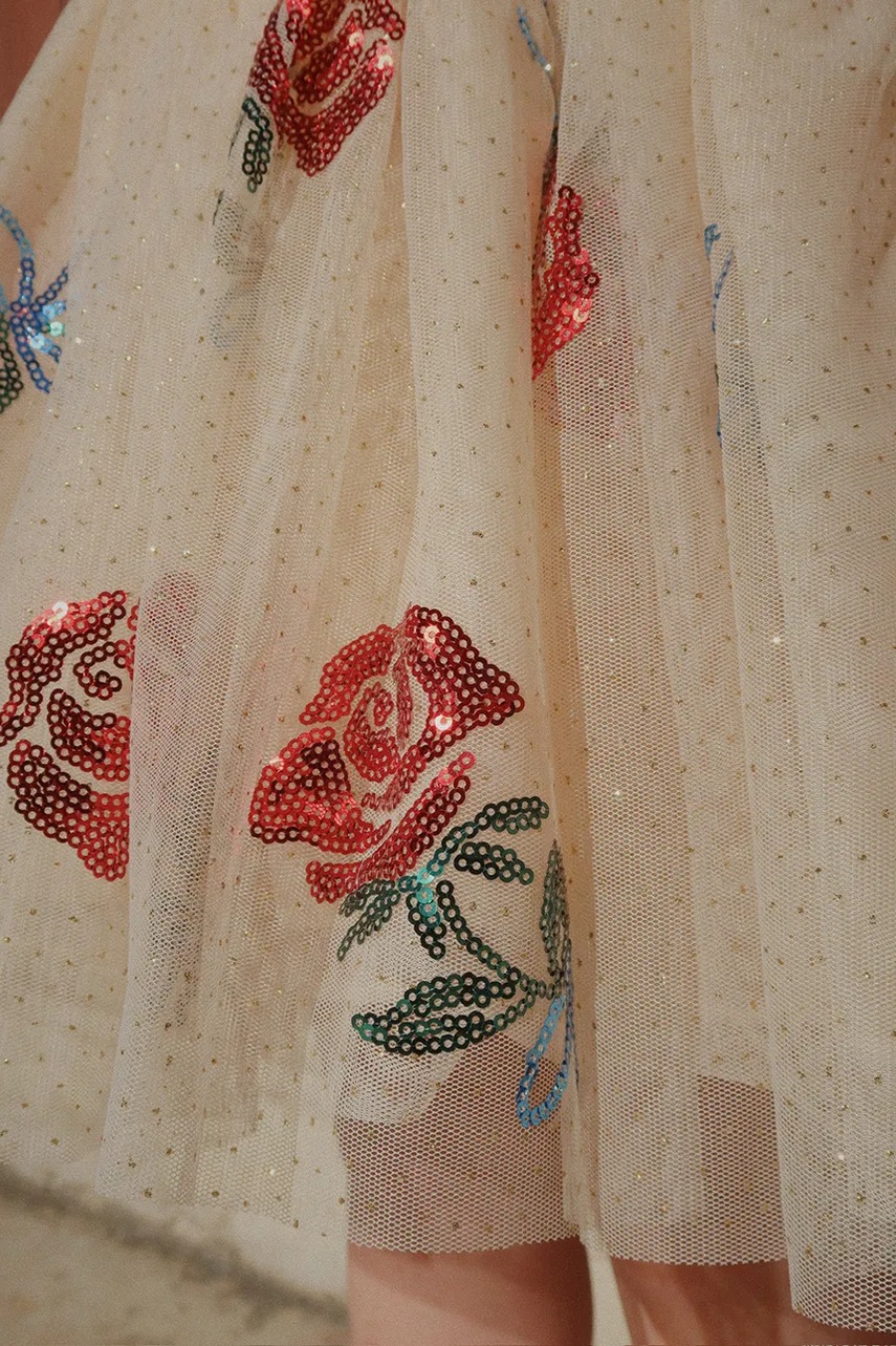 - Krótkie, bufiaste rękawy.