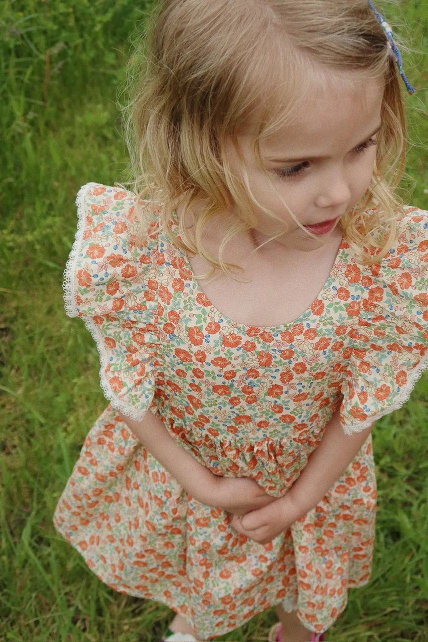 Konges Slojd sukienka bawełniana dziecięca VERBENA DRESS GOTS kolor pomarańczowy mini rozkloszowana KS102296