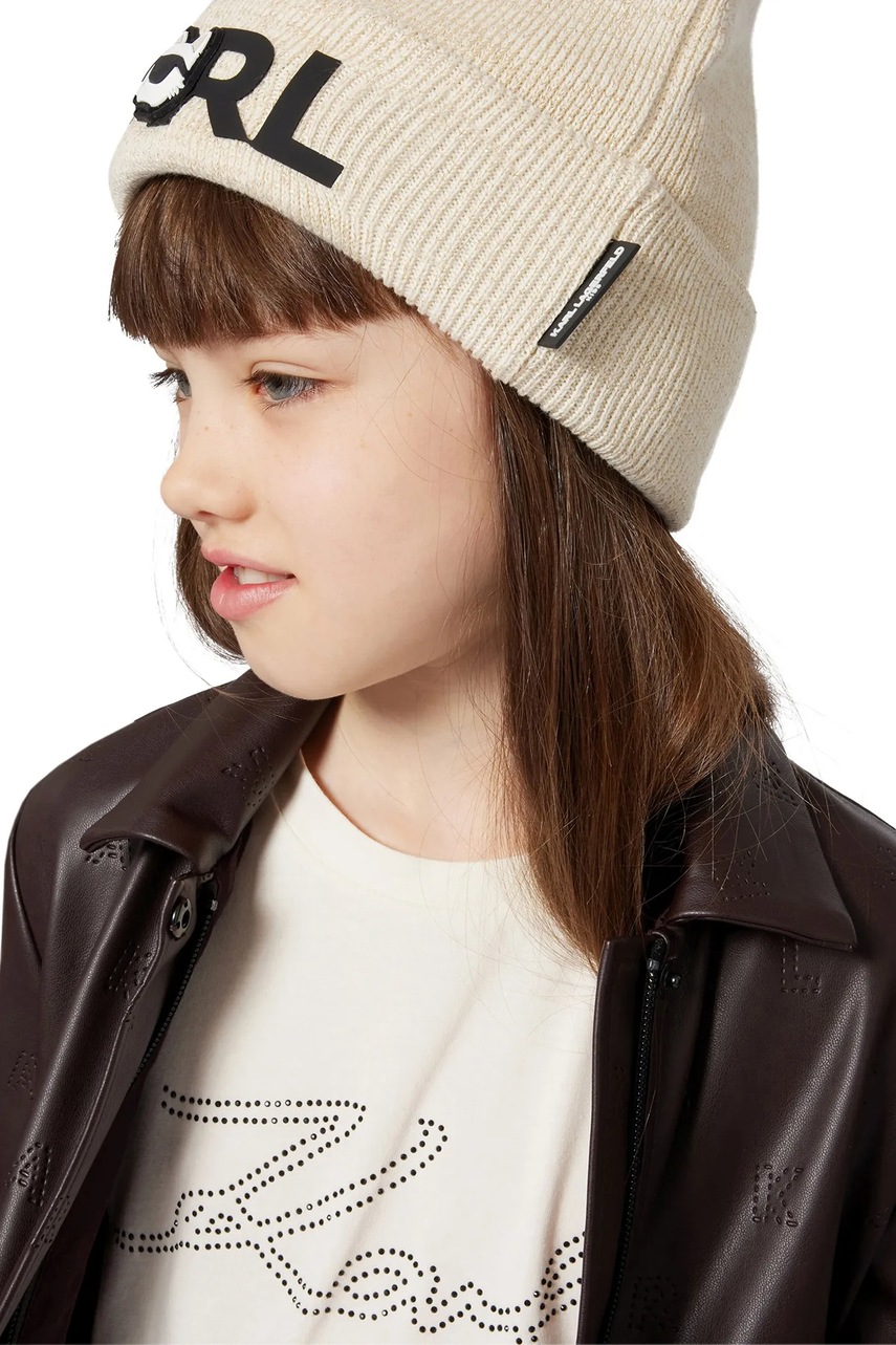 Karl Lagerfeld czapka i komin dziecięcy bawełniany kolor beżowy Z31013