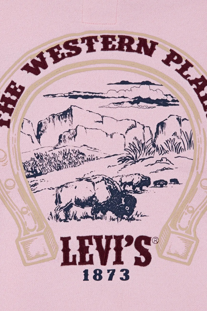 Levi's bluza dziecięca PULLOVER HOODIE WITH RUFFL kolor różowy z kapturem z nadrukiem 4EN426