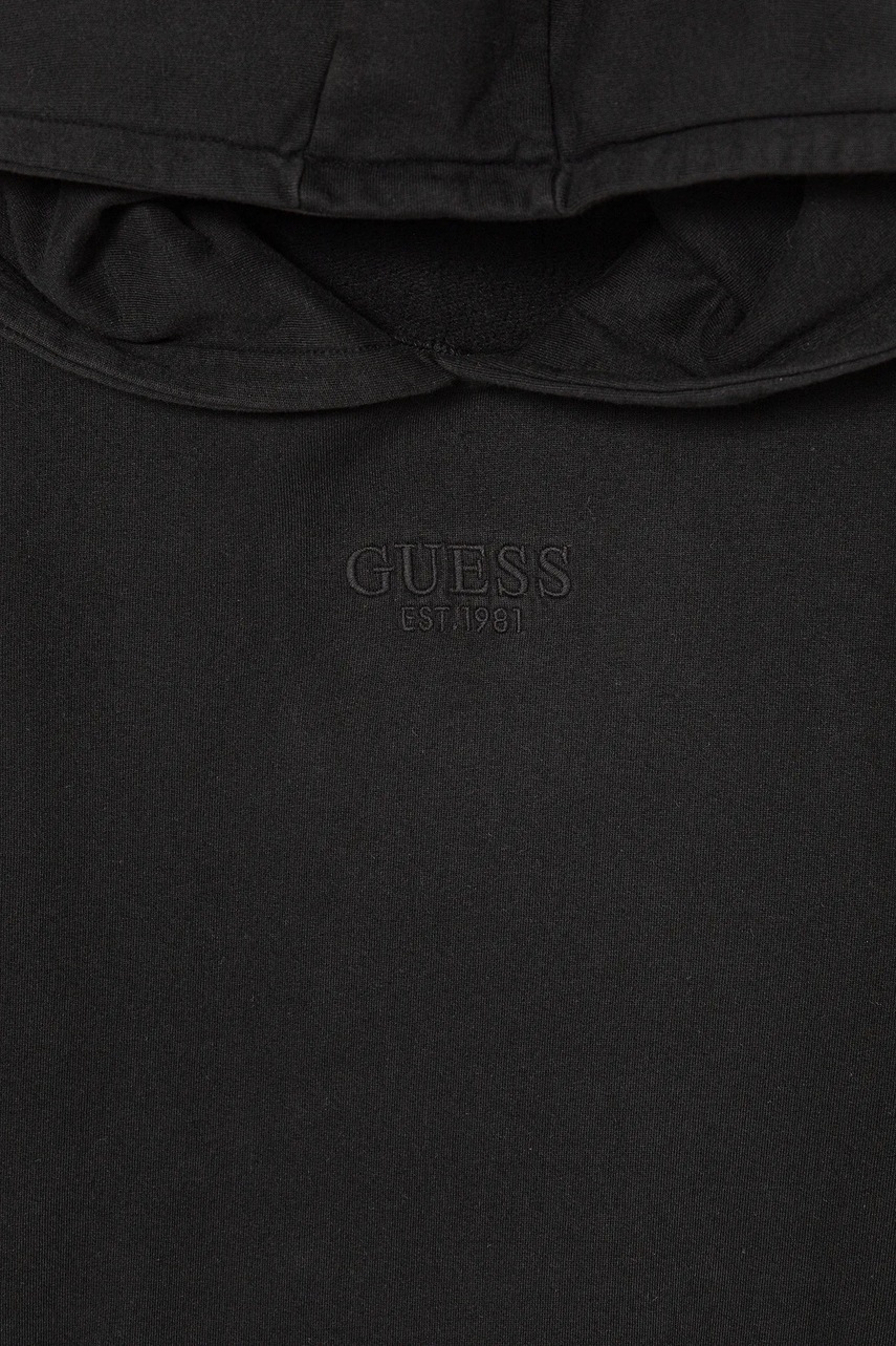 Guess bluza bawełniana dziecięca kolor czarny z kapturem gładka J5YQ21 KAV34