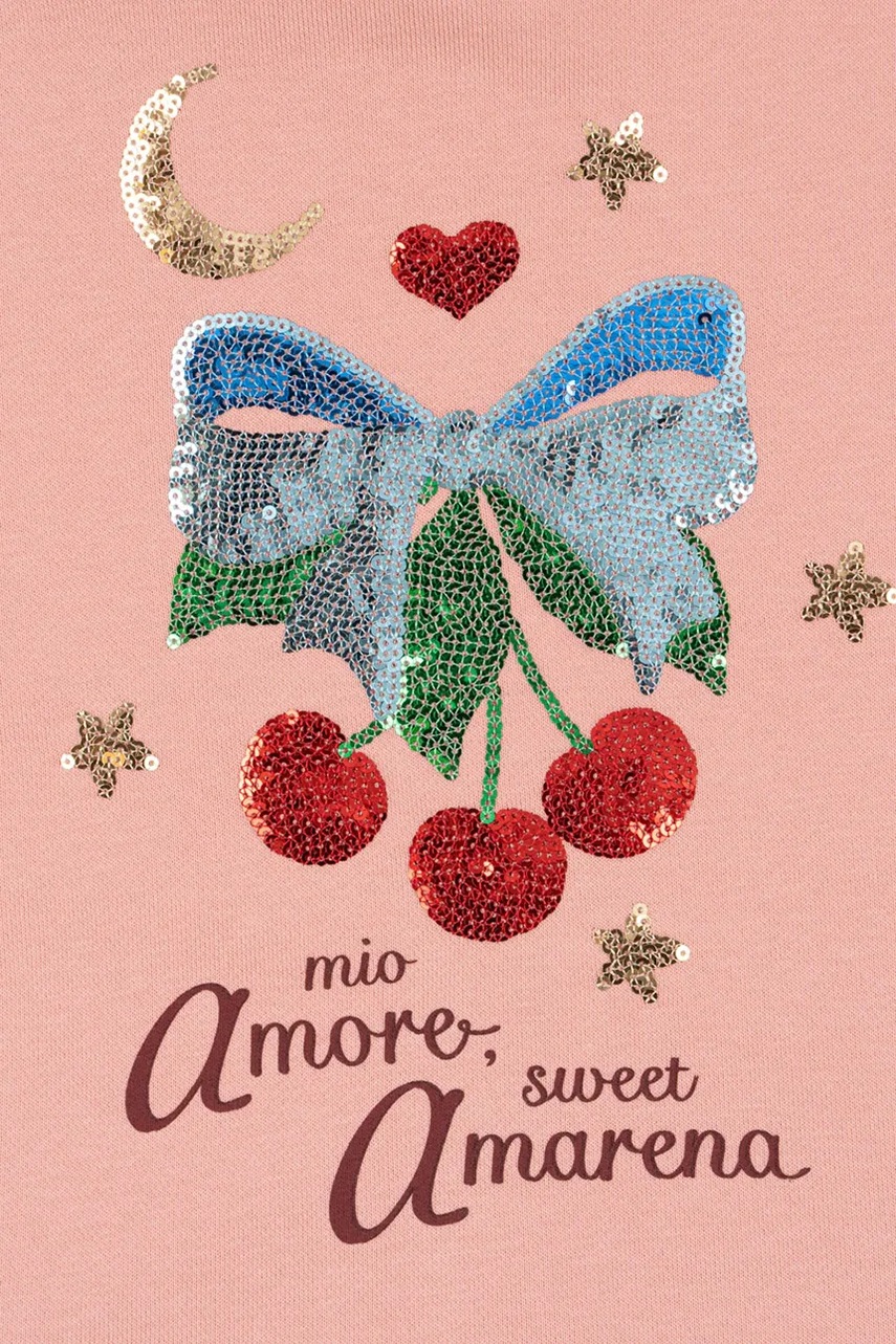 Konges Slojd bluza dziecięca LOU SEQUIN SWEAT ZIP HOOD OCS kolor różowy z kapturem z aplikacją KS103863