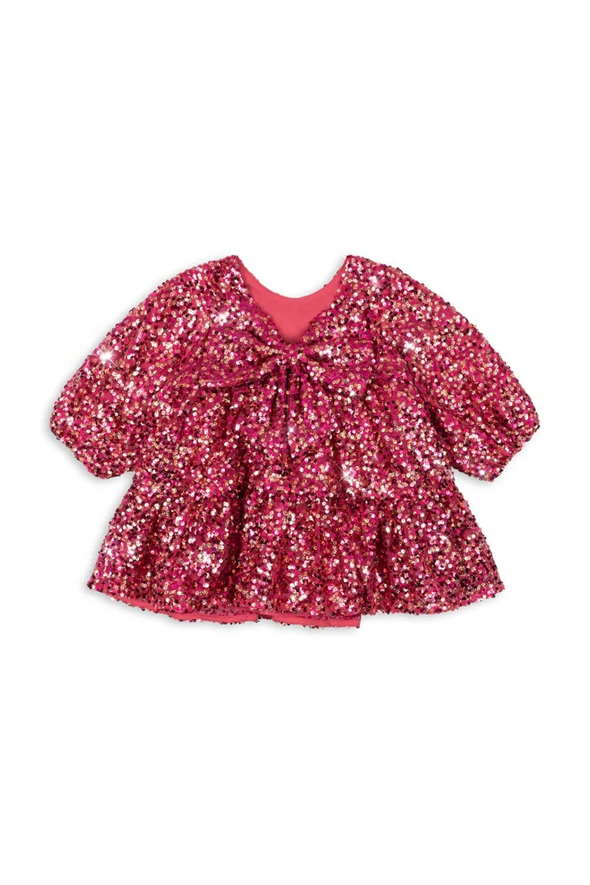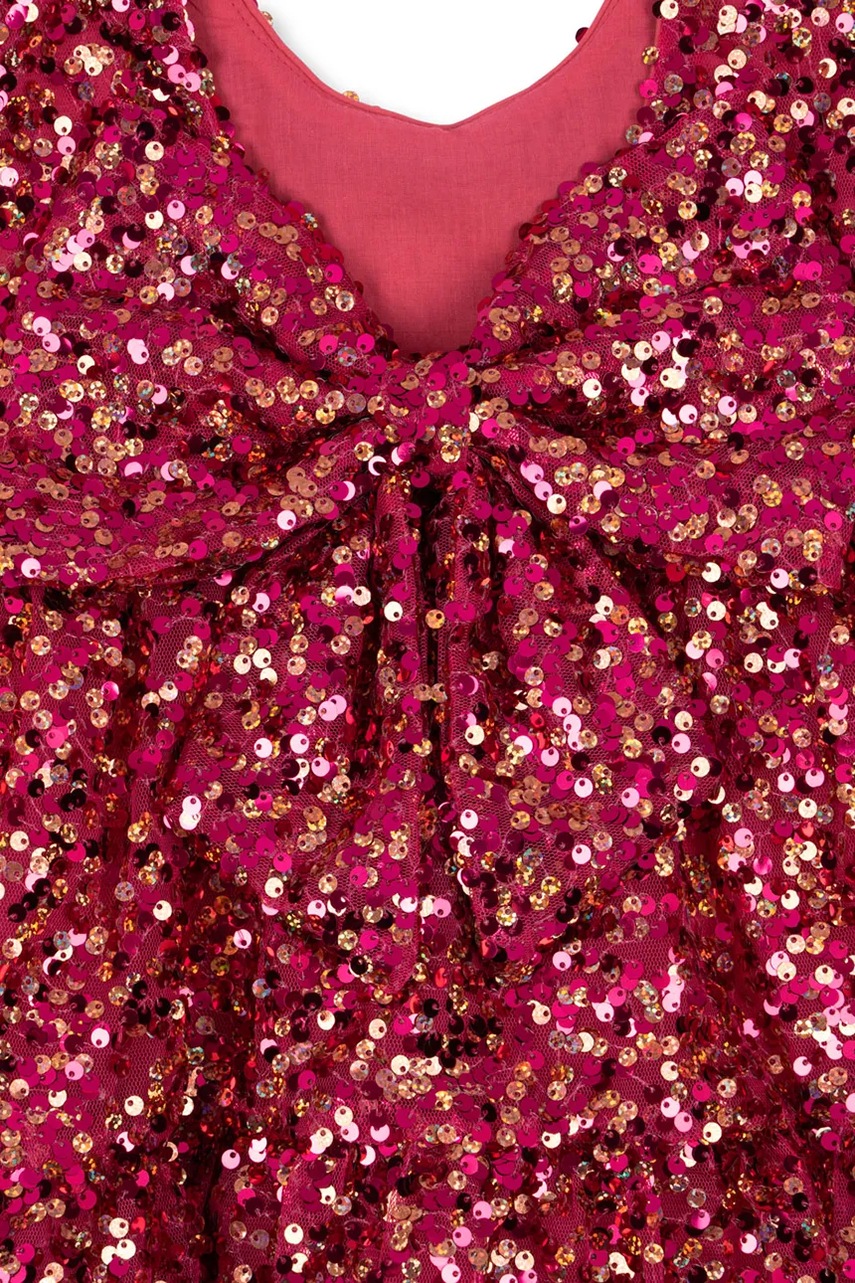 Konges Slojd sukienka dziecięca LILA SEQUINS BOW DRESS kolor bordowy mini rozkloszowana KS103858