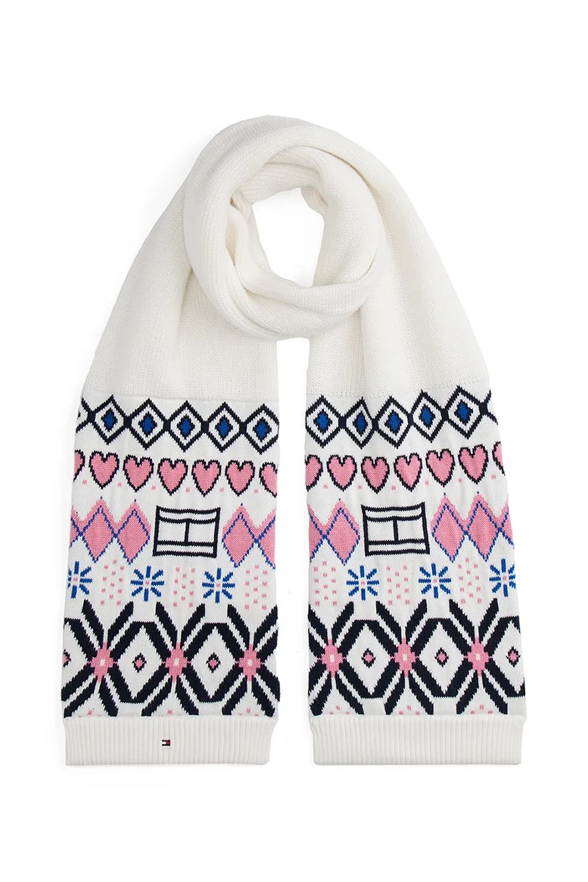 Tommy Hilfiger szalik bawełniany dziecięcy kolor biały wzorzysty KG0KG09041