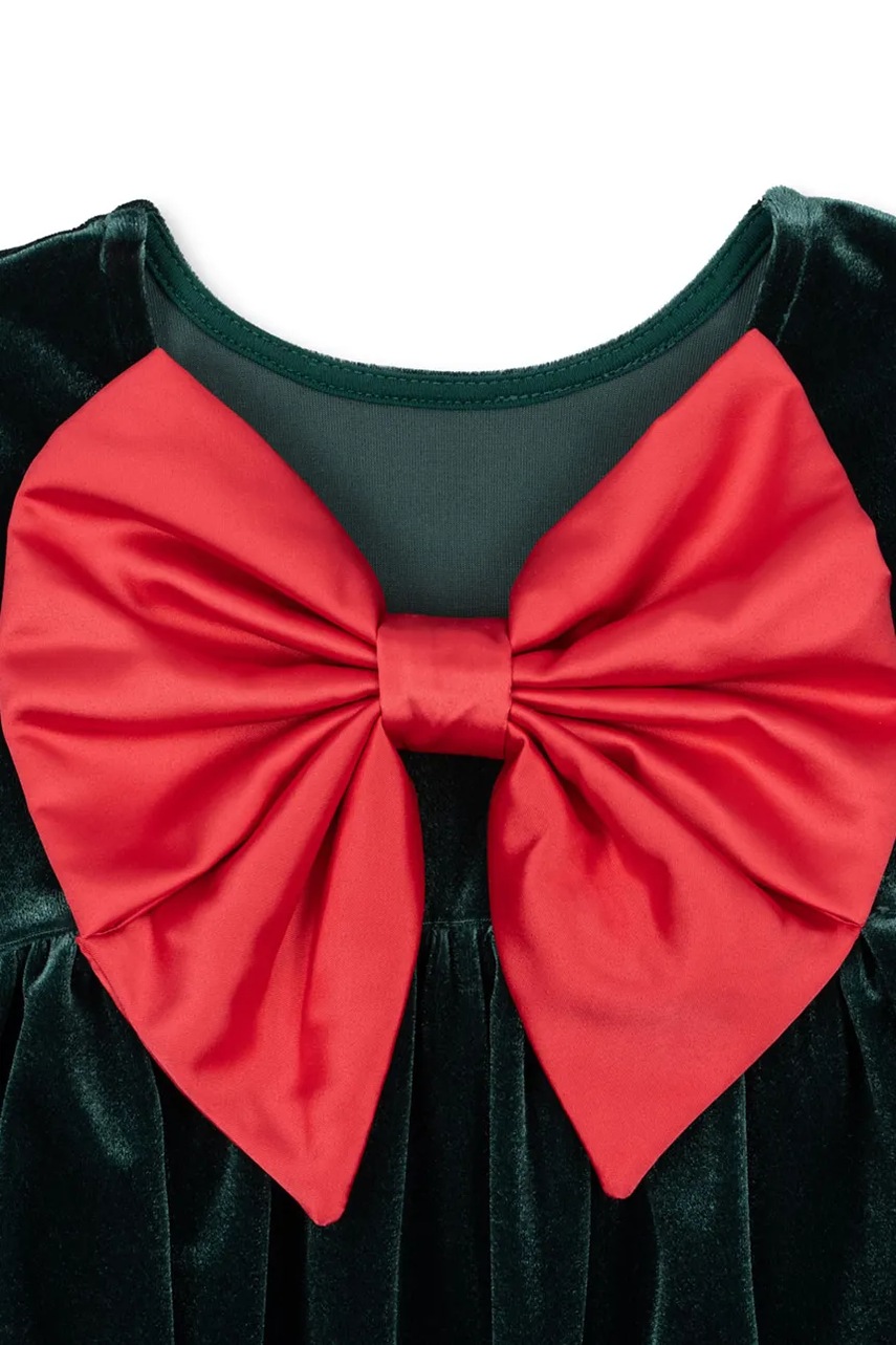 Konges Slojd sukienka welurowa dziecięca GIA BOW DRESS GRS kolor zielony mini rozkloszowana KS104303